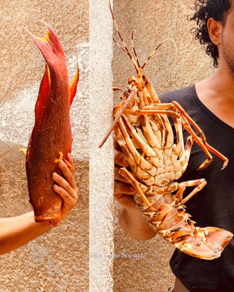 The food we serve includes freshly caught seafood, Socotran grown fruits and vegetables, home cooked middle eastern dishes, free range chicken, freshly laid eggs, homemade pasta and rice.