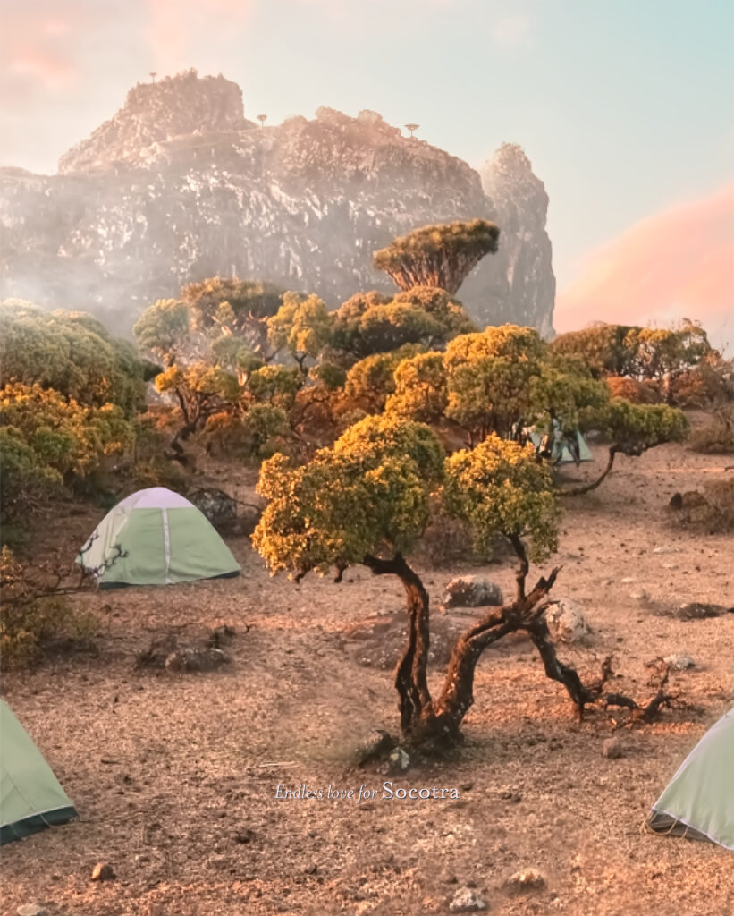 Most of the camping are in designated camp sites. There are some basic hotels in Hadibo, but we don’t usually recommend these as the best base to explore from.