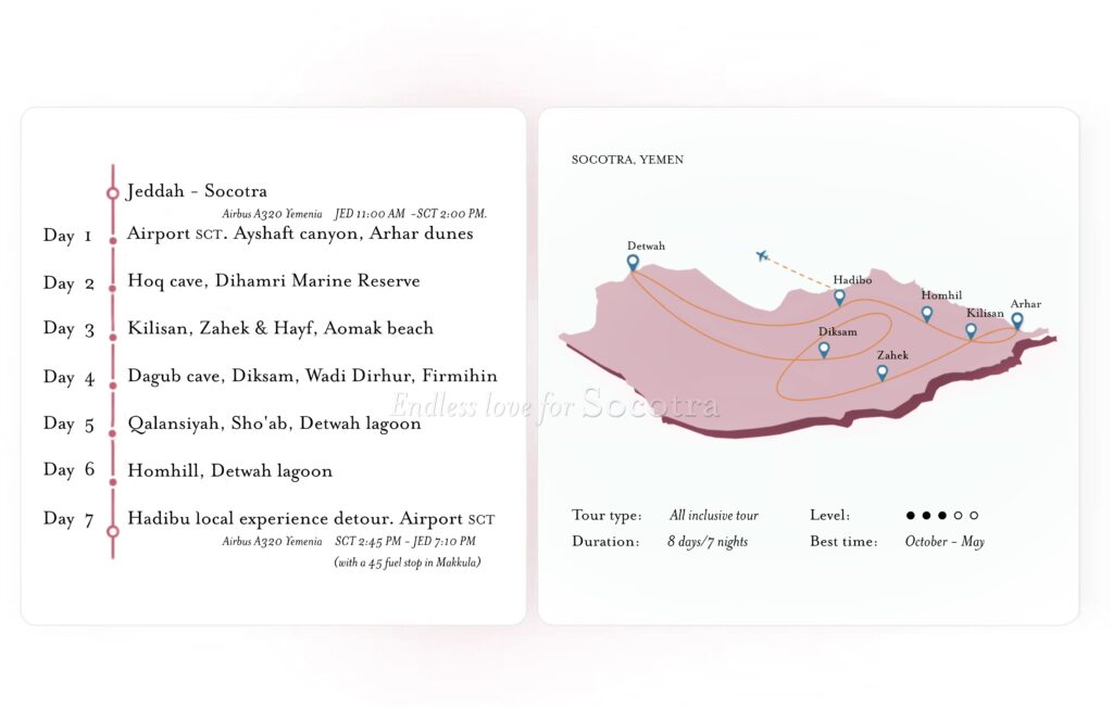 Let us know which dates work best for you to pre-book your Socotra tour 2026/2027
